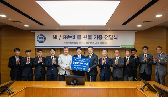 2025년 9월29일 신본관 2층에 위치한 회의실에서 정구환 NI 한국지사장, 신동만 ㈜누비콤 대표, 이기정 한양 대학교 총장, 김민수 부총장, 김선우 Beyond-G 글로벌 혁신센터 센터장 등이 참석한 가운데 'NI/㈜누비 콤 현물 기증 전달식'이 개최되었다. 이기정 총장은 환영사를 통해 "NI와 ㈜누비콤에서 정말 감사한 선물을 주셨다. 한양대학교 학생들이 이 소프트웨어를 통해 새로운 꿈을 꾸며 더 큰 미래로 향할 수 있는 계기가 될 수 있으리라 생각한다."며 감사의 인사를 전했다.