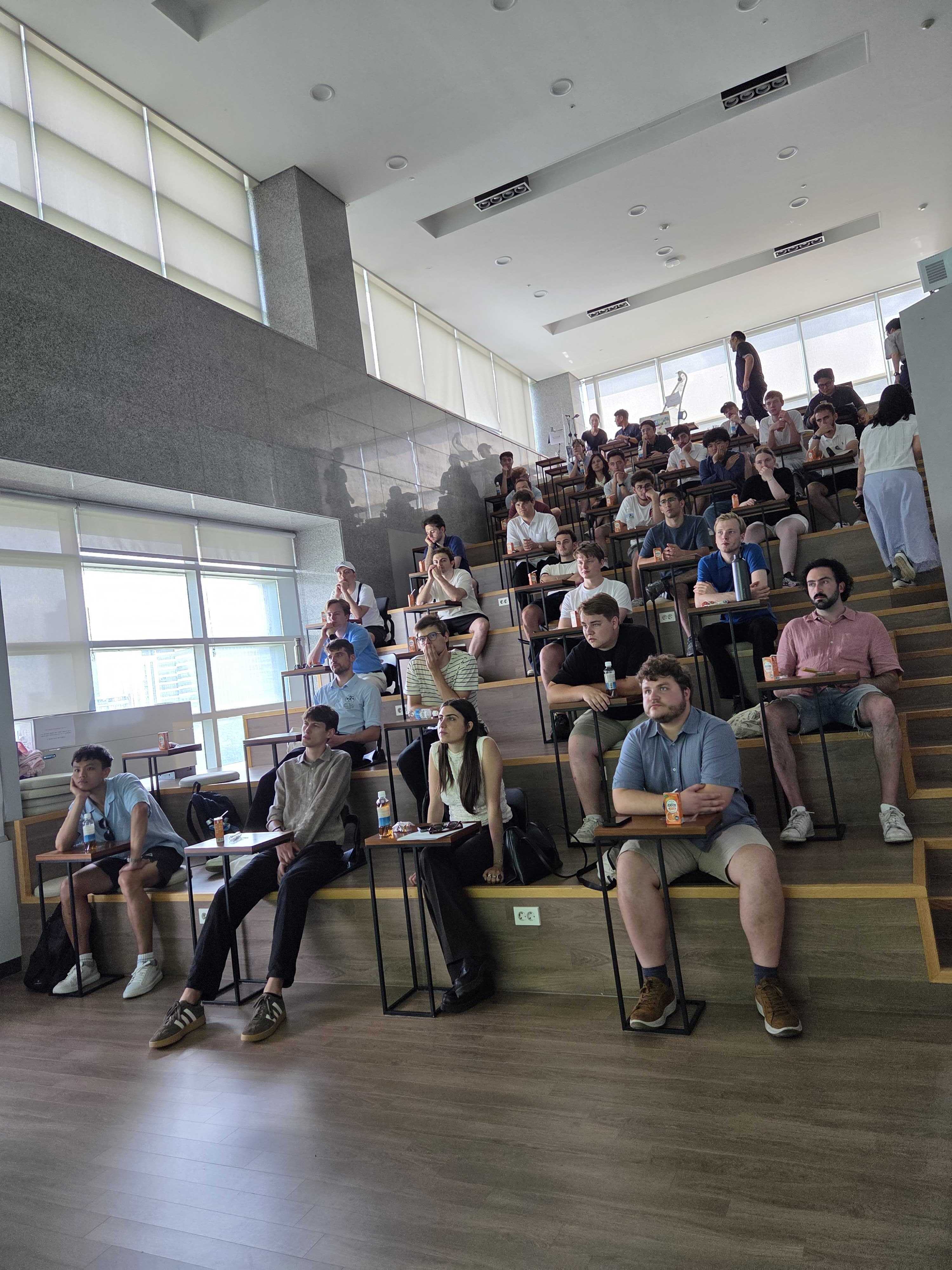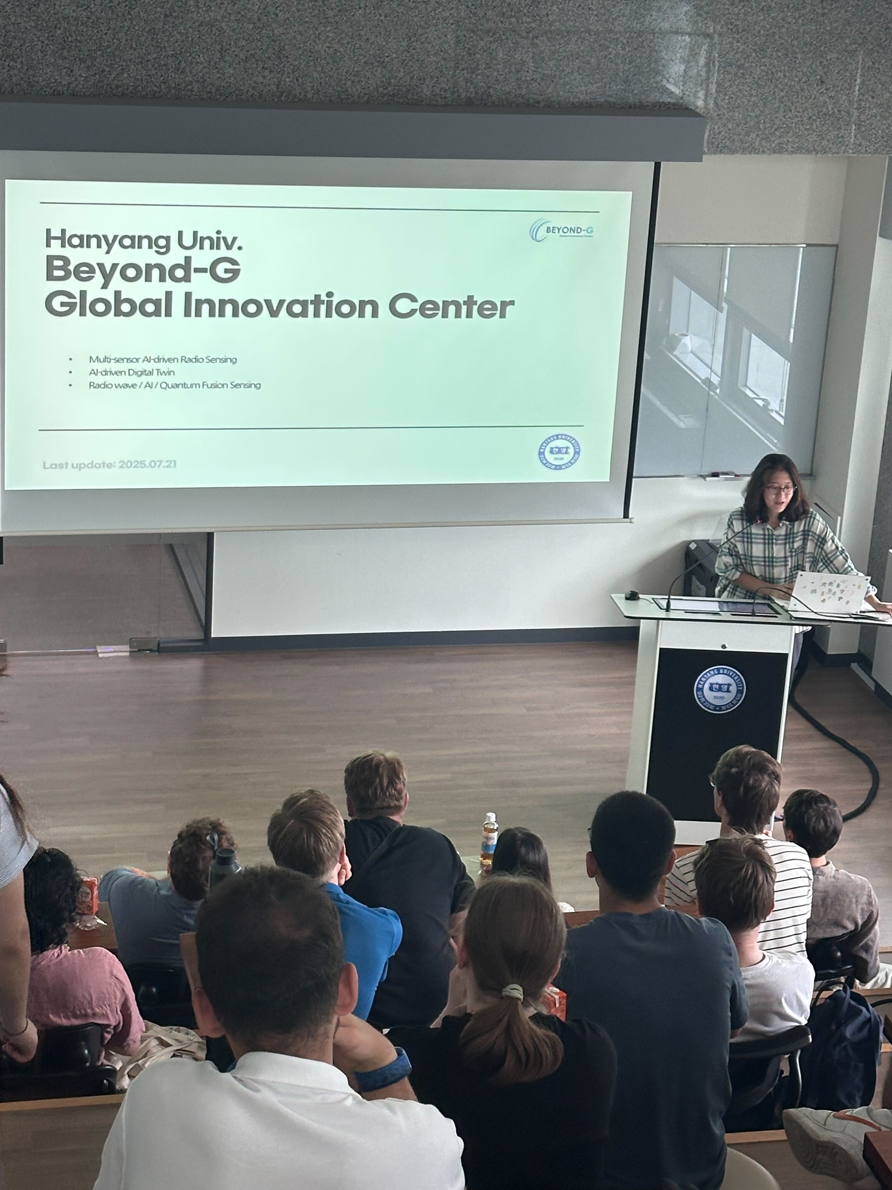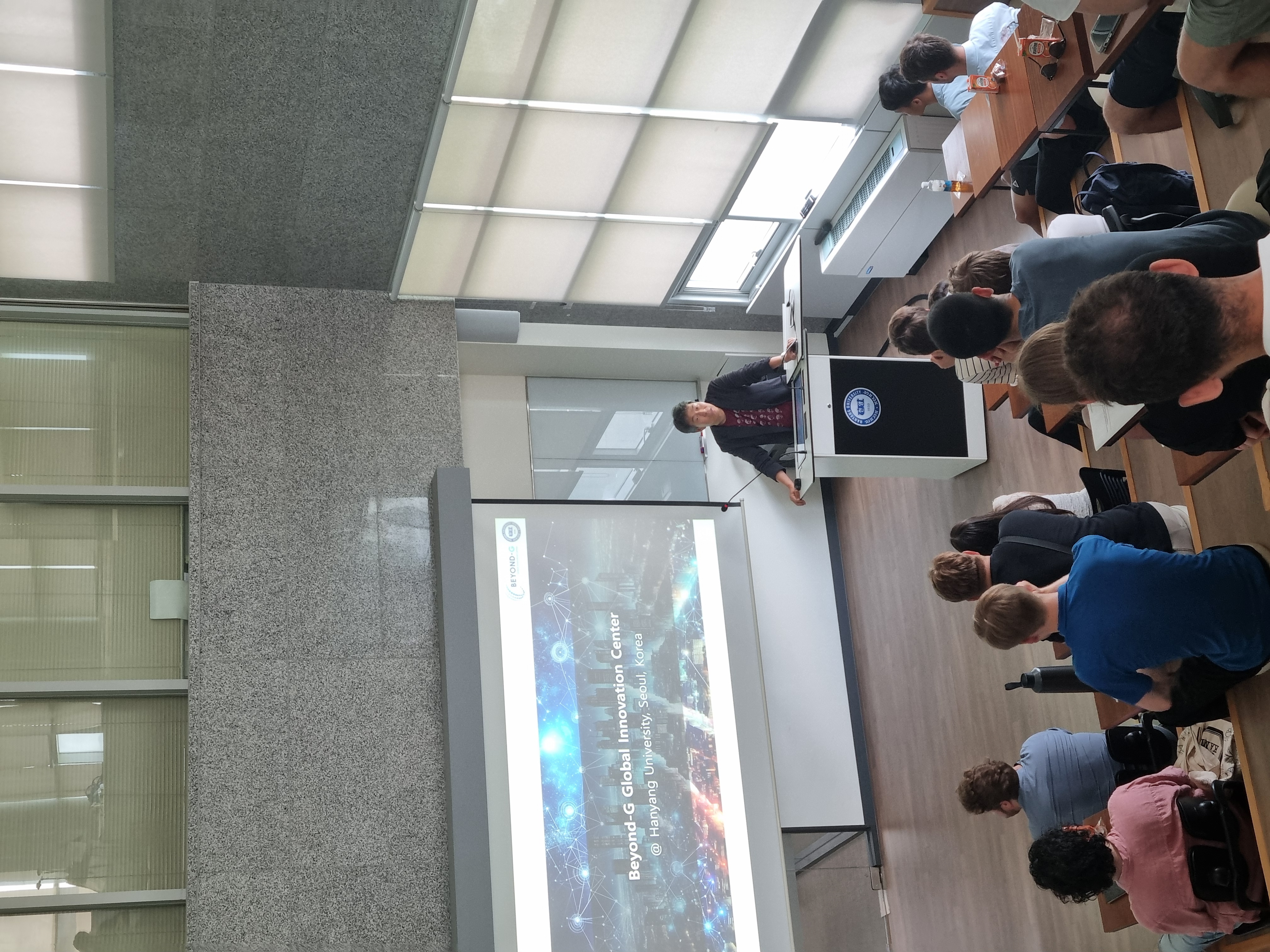 이 날 네덜란드 대학생단 방문을 위해 Beyond-G 글로벌 혁신센터에서는 김선우 센터장, 홍송남 1그룹장, 송익현 3그룹장, 오윤선 교수가 ISAC, AI-RAN, 인공지능과 Robot 등에 대한 차세대통신 연구개발진행사항에 대해 소개하였으며 네덜란드 Eindhoven 대학의 학생들은 깊은 관심을 가지고 진지한 모습으로 견학을 실시하였다.