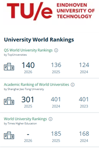 2011년 ARWU(세계 대학 학술 순위) 순위에서 TU/e는 공학/기술 및 컴퓨터 과학(ENG) 부문에서 국제적으로 52~75위, 컴퓨터 과학 과목 분야에서 국제적으로 34위를 차지한 유럽의 명문 대학이다.