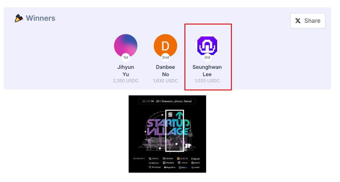 ▲ Awarded 3rd Place at 'Solana Superteam Korea Hackathon' 1020 USDC)