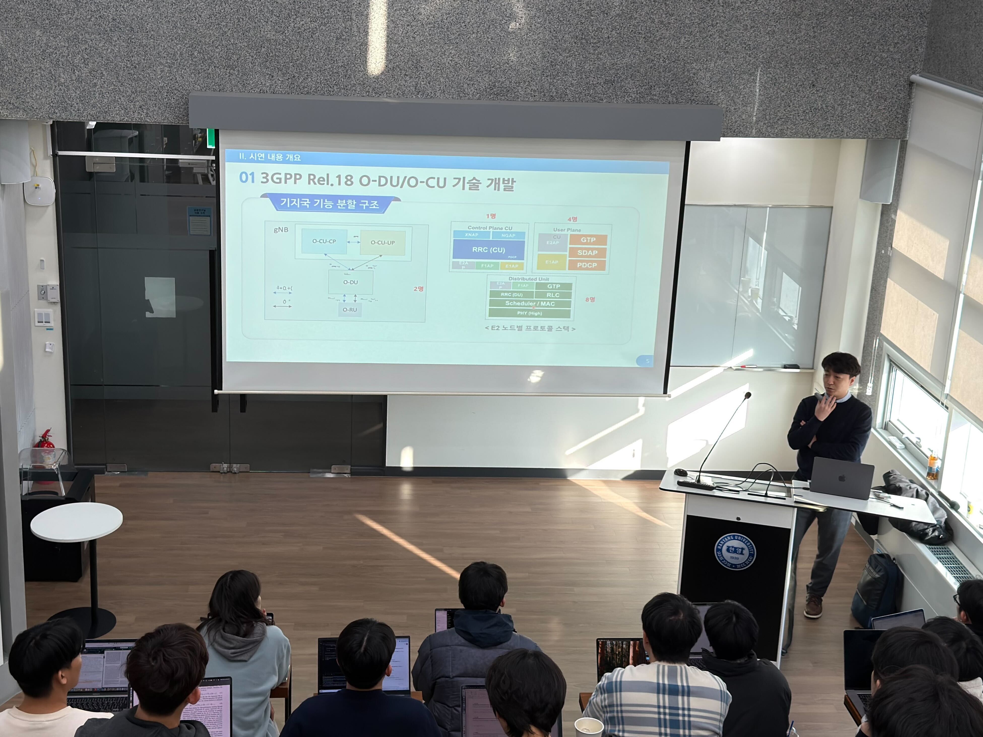 On 26th December, the Beyond-G Global Innovation Center hosted a seminar by Senior Researcher Minsoo Jeong from ETRI, titled "AI-Based Real-Time Base Station Energy Saving Technology." During the seminar, Researcher Jeong presented the latest developments in network energy-saving technologies and shared his practical experience from real-world projects, highlighting strategies to enhance network energy efficiency through the use of artificial intelligence.Participants gained a deeper understanding of real-time, data-driven energy-saving techniques and network optimization approaches, followed by an engaging Q&A session on practical applications. One researcher from WSL who attended the seminar commented, "This seminar provided a valuable opportunitiy to learn both the latest research trends and practical expereince. We believe that continued collaboration with ETRI will allow us share research outcomes and enhance the expertise of our center members." The seminar offered a valuable opportunity to explore both the latest research trends and hands-on experience. The center looks forward to continuing collaboration with ETRI to share research results and further strengthen the expertise of its members.