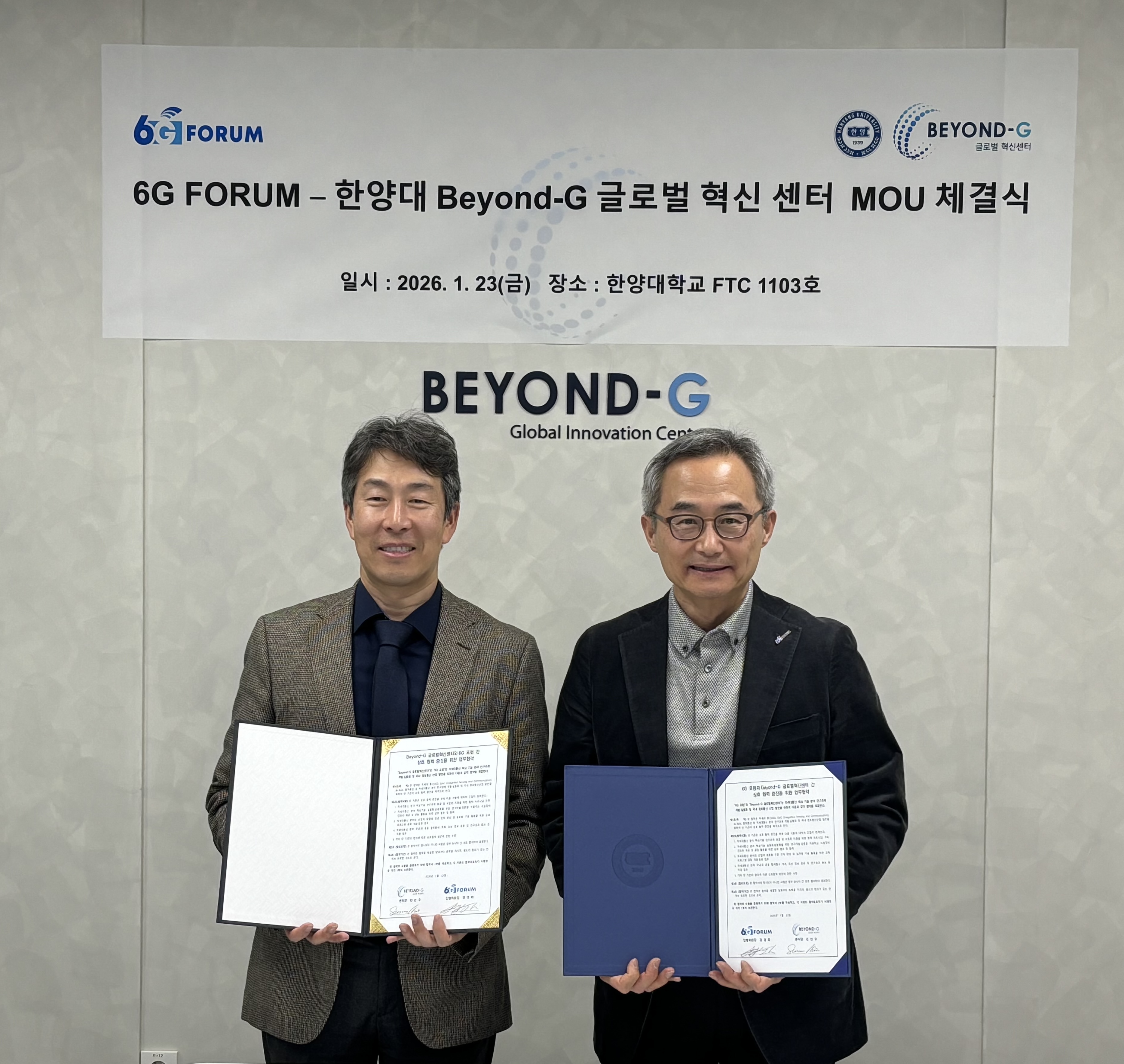 On January 23, 2026, Hanyang University’s Beyond-G Global Innovation Center signed a Memorandum of Understanding (MOU) with the 6G Forum to collaborate on research and demonstration in next-generation communication technologies. The partnership will focus on key areas such as 6G, ISAC (Integrated Sensing and Communication), AI-RAN, and quantum communications, aiming to strengthen Korea’s information and communications (ICT) industry by advancing research, testing new technologies, and supporting commercialization. The signing ceremony was held at the Fusion Tech Center on Hanyang University’s Seoul Campus and was attended by KyungHi Chang, Executive Committee of the 6G Forum, and Sunwoo Kim, Director of the Beyond-G Global Innovation Center.